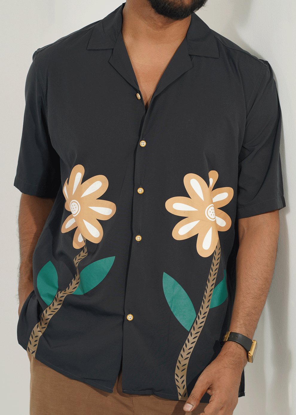 Mens Half Shirt Flower Print